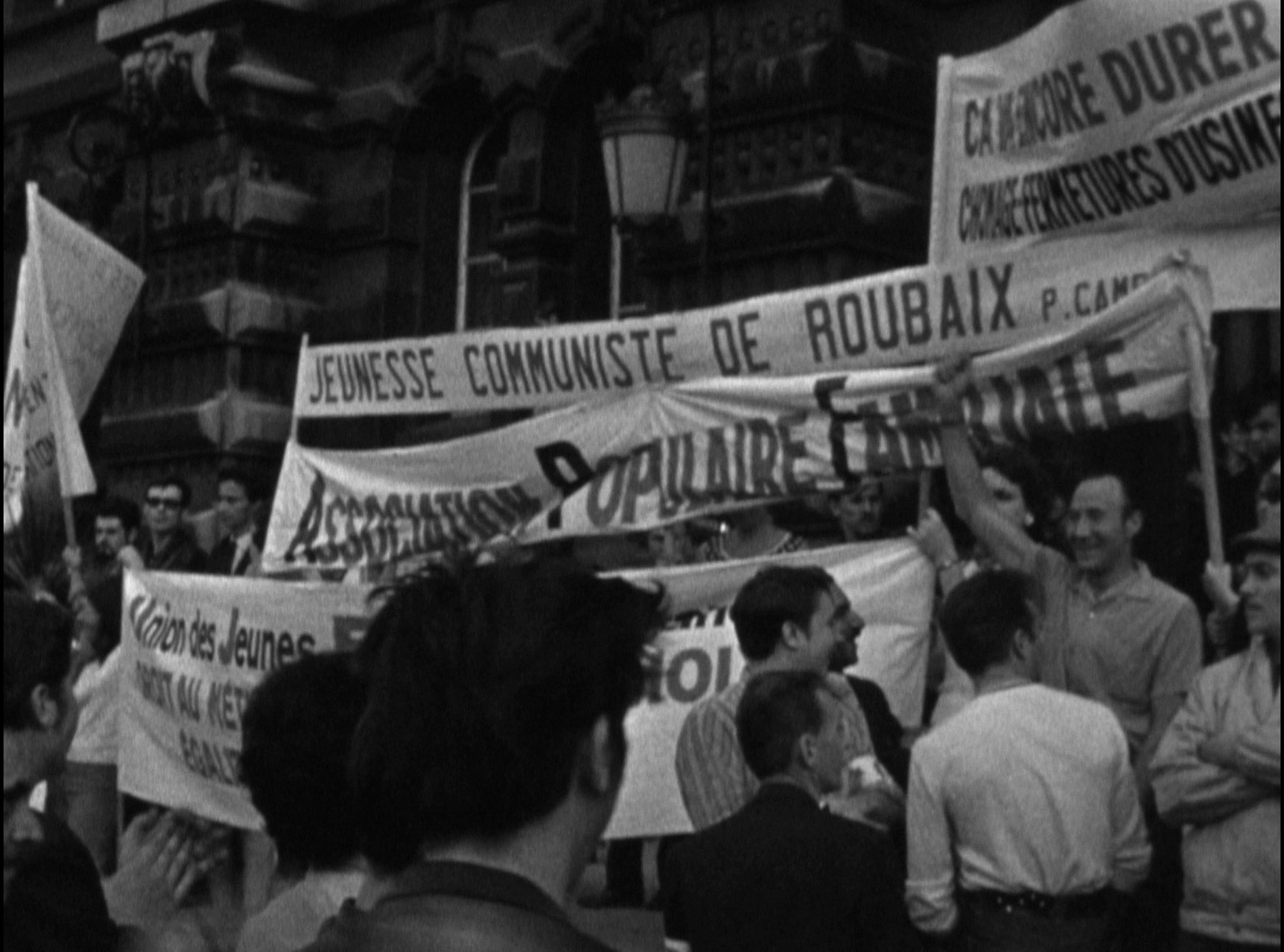 Les manifestants sont regroupés sur la place de la mairie de Roubaix. On reconnaît les deux dirigeants de l'Union départementale CGT Emile Duhamel et François Dumez. Quelques slogans relevés sur les banderoles : "Pour le droit au travail", "Non aux fermetures d'usines", "CGT Textile Roubaix : Non au chômage". La séquence suivante montre l'épouse du cinéaste, Lucienne Charret, avec un enfant.